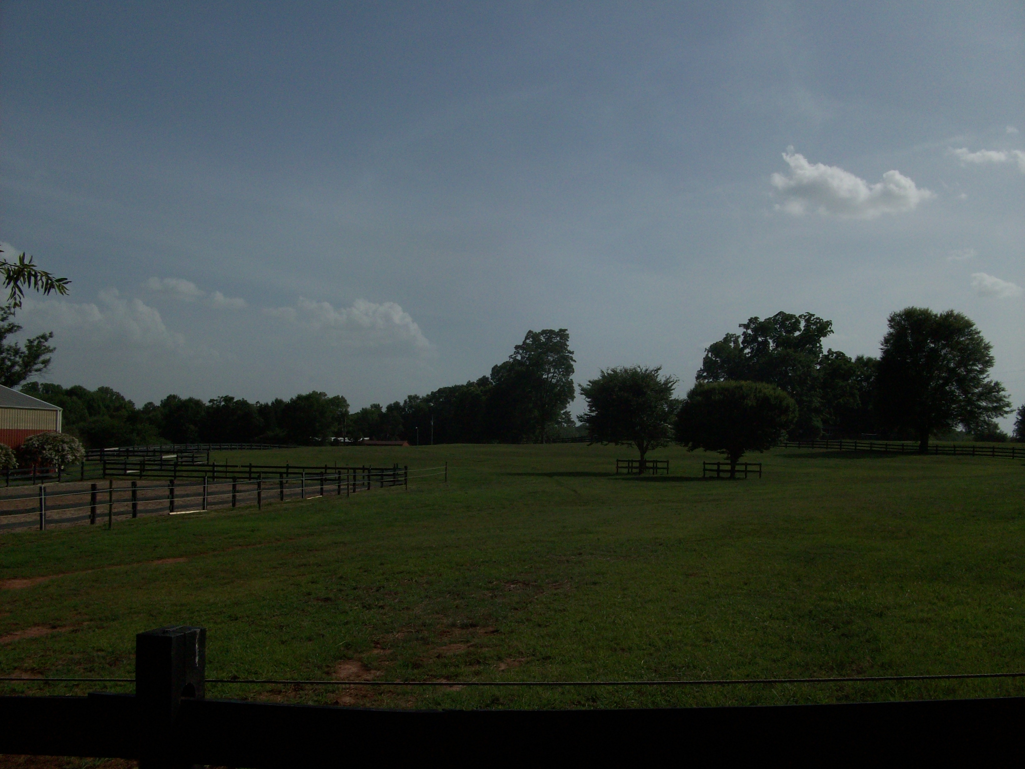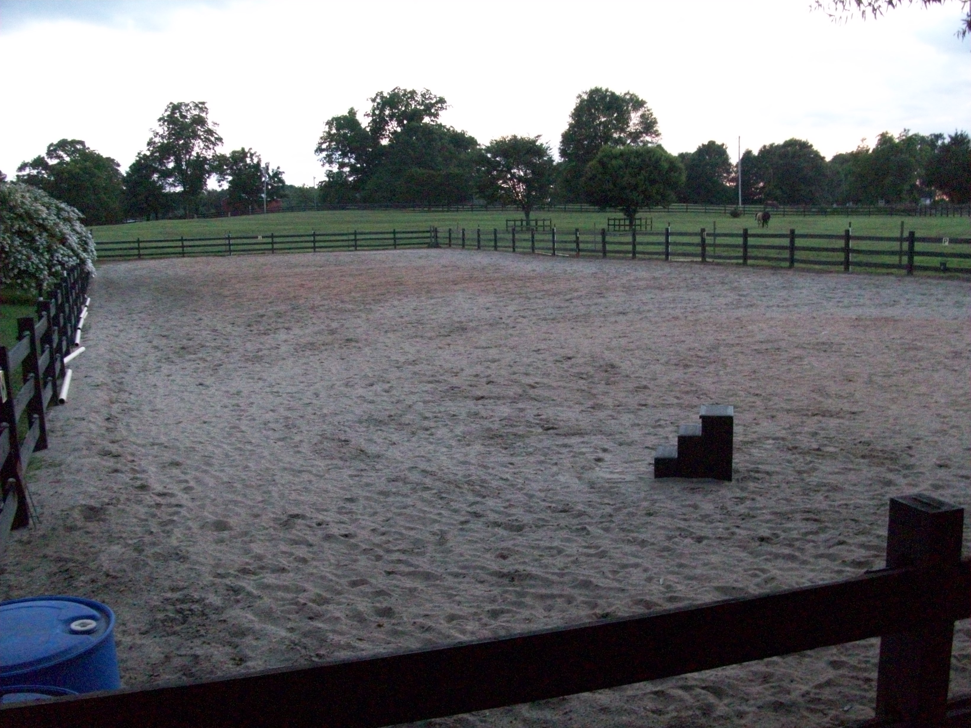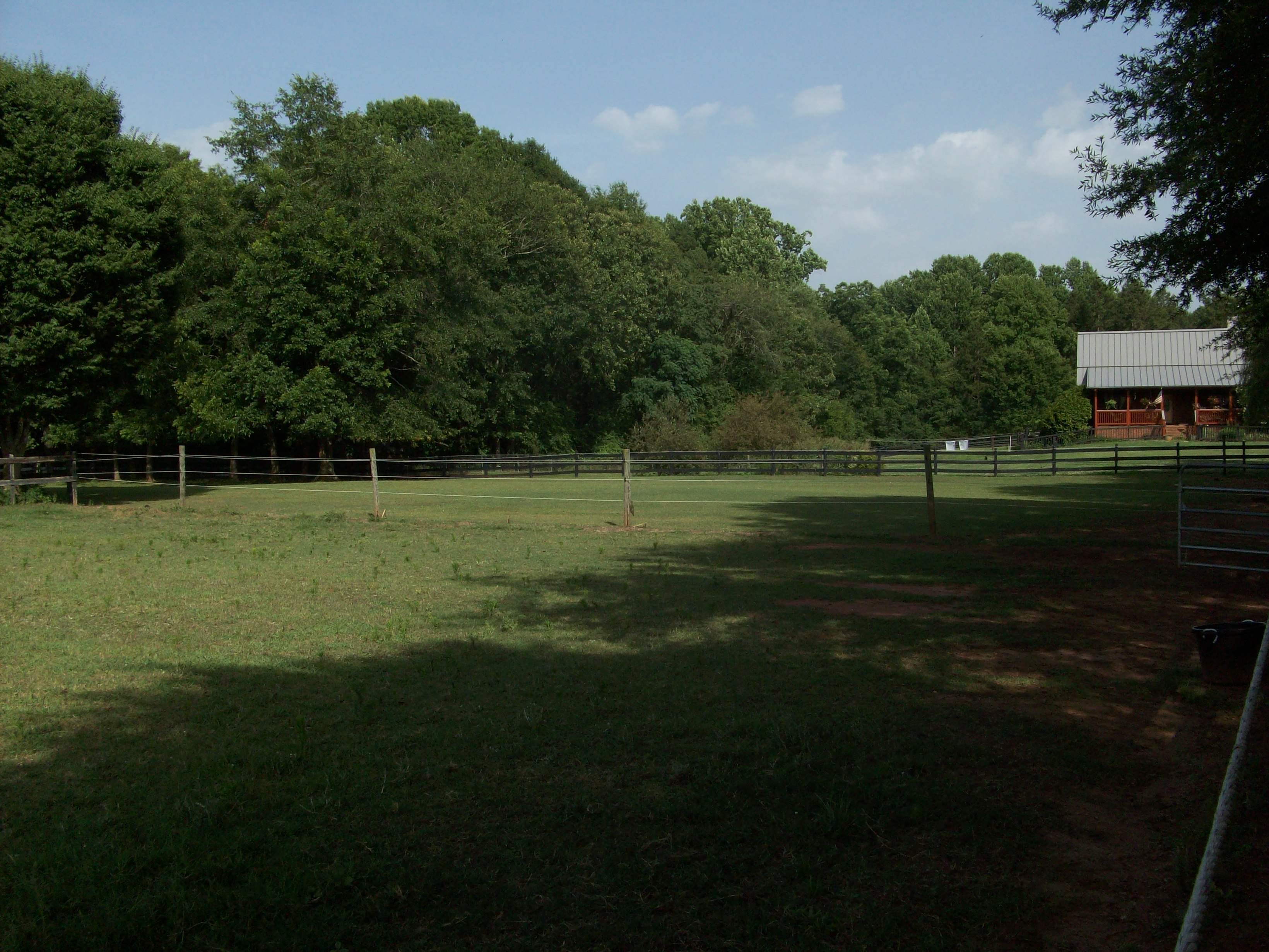 Most of the fields have a 15' perimeter riding area between fields, or between the inner and outer fence. (The whole property is double fenced with an electric gate at the entrance.)
